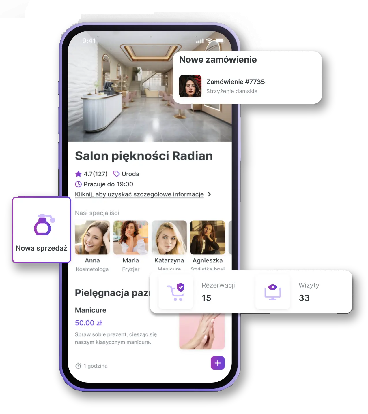 Zarządzaj rezerwacjami i personelem w jednej aplikacji. Łatwo planuj, przenoś lub anuluj rezerwacje z dowolnego miejsca i o dowolnej porze.